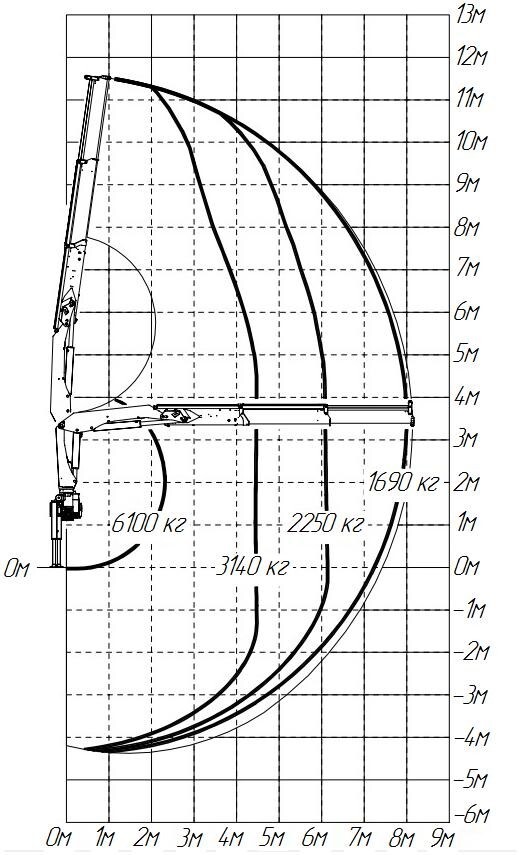 Грузоподъемность на максимальном вылете, кг1 690