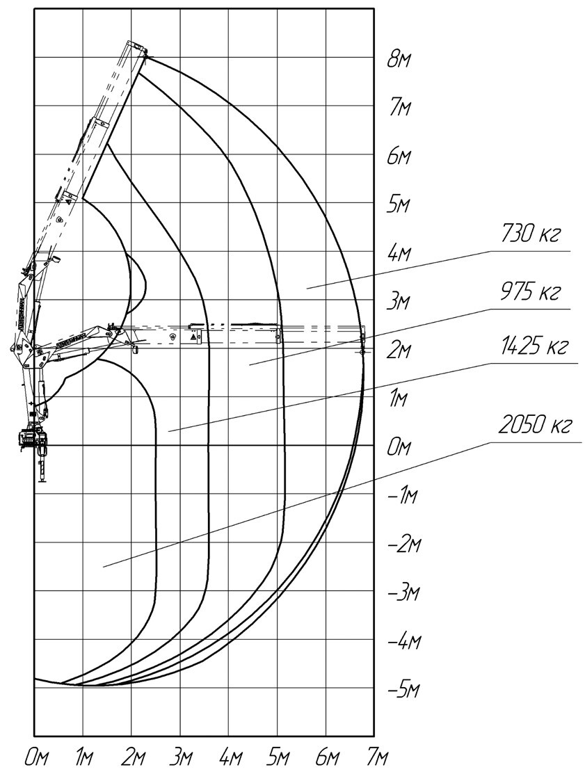 | Грузоподъемность на максимальном вылете, кг | 730 |